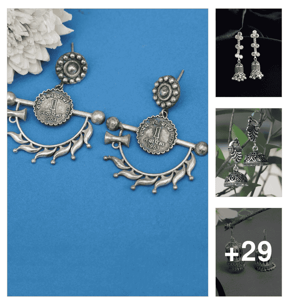 oxidised handcrafted work jhumka earring
