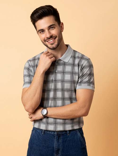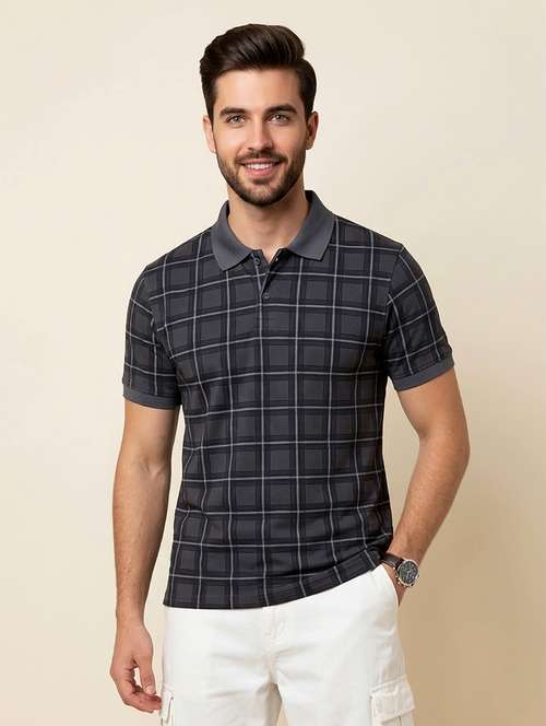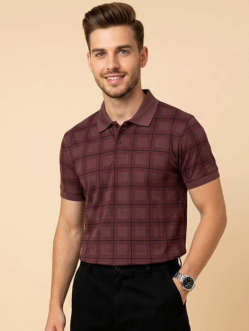 men checkered short sleeve regular fit polo t-shirt