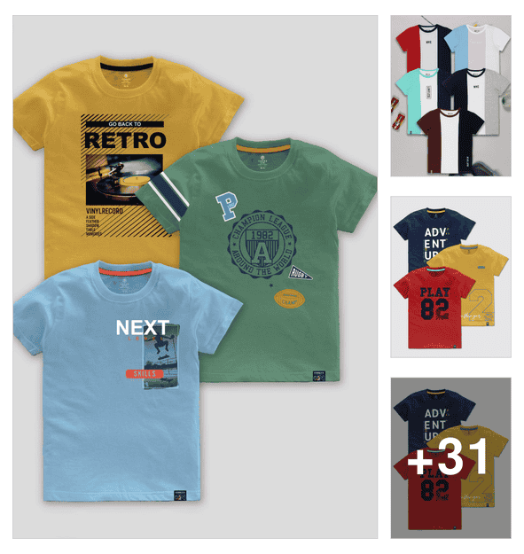boys round neck printed t-shirt combo
