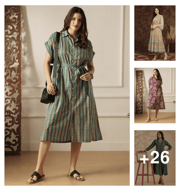 globus women blue ethnic block print mandarin collar flared hem tiered maxi fusion dress
