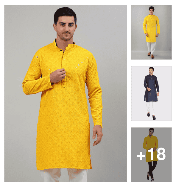 men long sleeve kurta and dhoti set