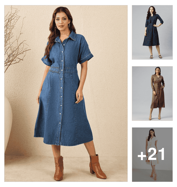 women printed collared three quarter sleeve shirt dress